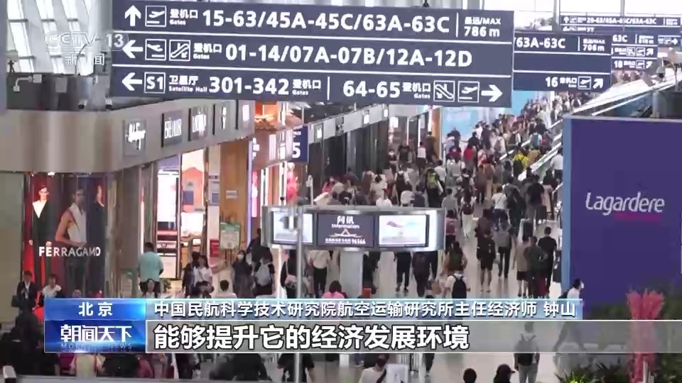 中國民航科學技術研究院航空運輸研究所主任經濟師 鐘山:通過我們這種“干支通、全網聯”以及通程航班的模式,能夠讓我們三、四線城市的旅客,融到整個國家的經濟社會建設中,能夠提升它的經濟發展環境。特別是從統一大市場的開放角度來看,這個是最終能夠促進我們國內市場的銜接。
