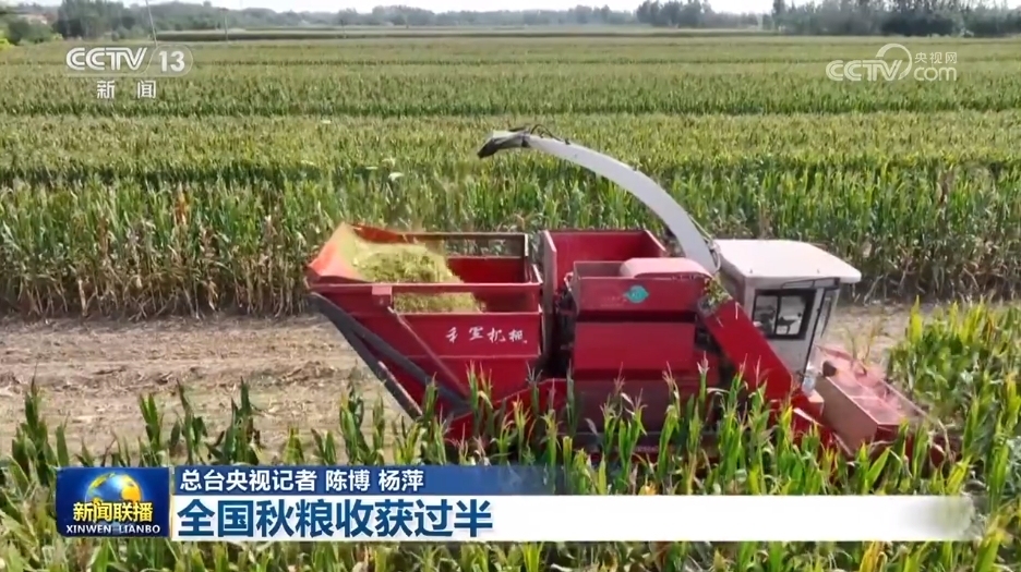 央視網消息(新聞聯播):農業農村部最新農情調度顯示,眼下全國秋糧收獲過半,主產區已進入收獲高峰。