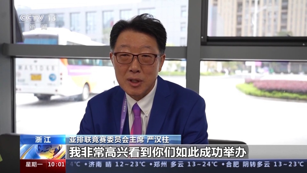 亞排聯競賽委員會主席嚴漢柱:我非常高興看到你們如此成功舉辦亞運會的男排和女排比賽,場館內外工作人員,他們在自己崗位上盡職盡責,沒有出現任何問題,有如此優秀的場館,我想在未來見證這個場館舉辦更多的排球國際賽事,我還會再來的。