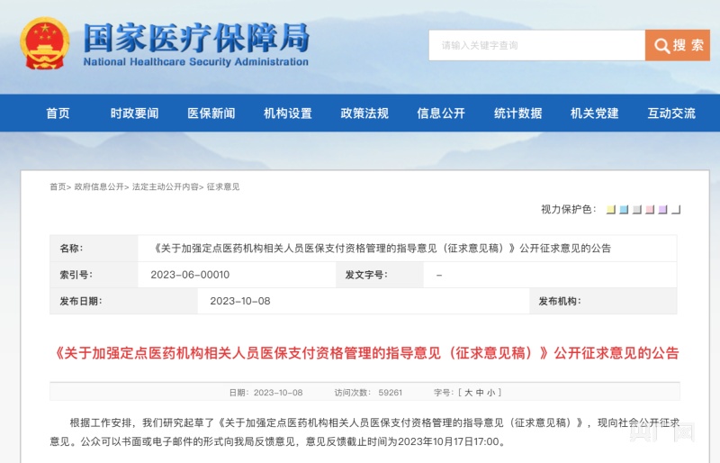 根據國家醫保局發布的公告,征求意見反饋截止時間為2023年10月17日17:00。
