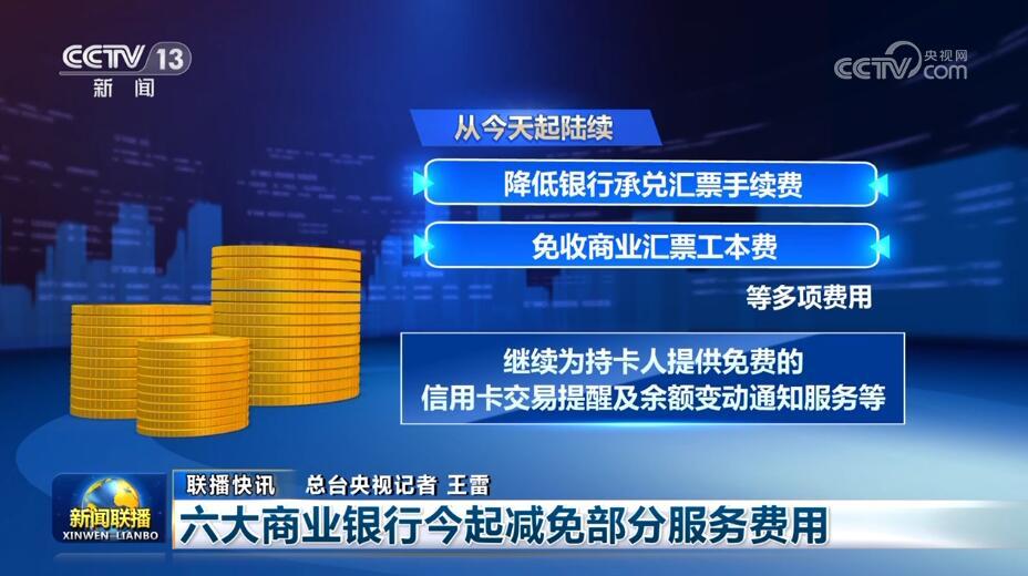 工商銀行、農業銀行、中國銀行、建設銀行、交通銀行、郵儲銀行六大銀行發布公告,將從今天起降低多項銀行服務收費。多項減免措施從今天起實施,部分銀行此前已經降低或減免的相關收費項目將繼續延續優惠措施。六家銀行還承諾,繼續提供信用卡容時、容差服務,也就是說如果信用卡持卡人在還款日沒有足額還款,所差金額不高于10元,或者還款日期晚于還款日不超過3天,銀行將視同全額還款,將沒有償還的金額自動轉入下期賬單。未來,六大行還將陸續把容差金額擴大到100元。