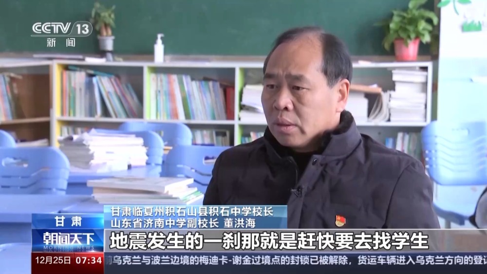甘肅臨夏州積石山縣積石中學校長、山東省濟南中學副校長 董洪海:地震當天的凌晨,就已經有臨夏市的百姓到學校里邊送食物,有大量的救援的車輛、人員進入,也感到了整個社會支撐的力量。我不是一個人在戰斗,是一個很大的團隊。