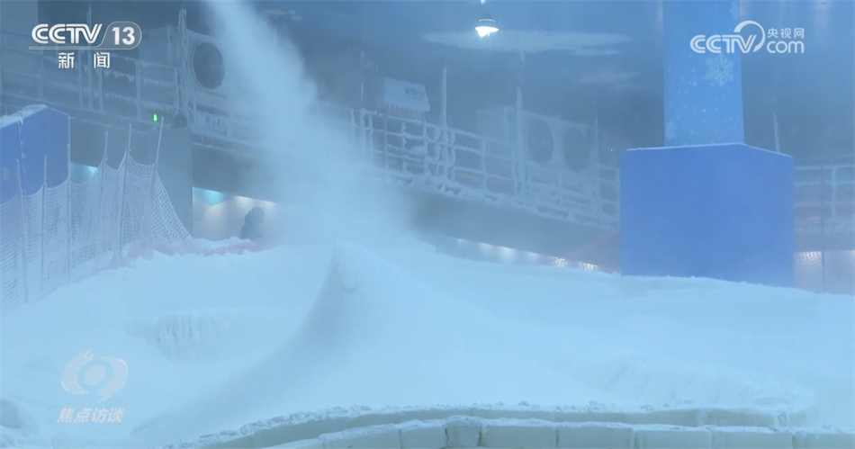 廣西北海銀基冰雪王國工程經理王金波:“在這邊做雪場難度很大,讓氣溫不太低也不太高,游客在游玩的同時不會感覺到特別冷,還能保持雪質。”