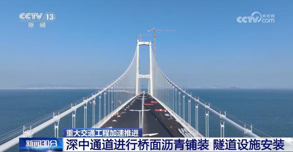 逢山開路,遇水架橋。在當前世界上綜合建設難度最高的跨海集群工程——深中通道建設現場,3000多名建設者正在加緊橋面瀝青鋪裝、隧道內機電及交通安全設施安裝等,為今年6月具備通車條件做沖刺。