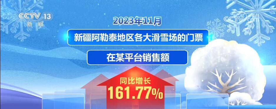 2023年11月,新疆阿勒泰地區各大滑雪場的門票在某平臺的銷售額同比增長了161.77%。