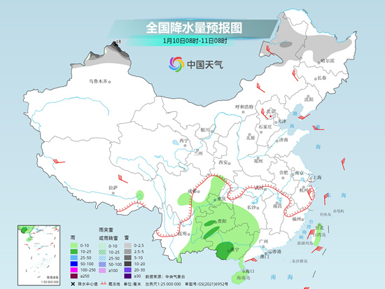 今天南方陰雨天氣持續,明天降雨區域將縮減到西南一帶,北方則多晴朗干燥天氣,新疆北部仍需警惕強降雪。