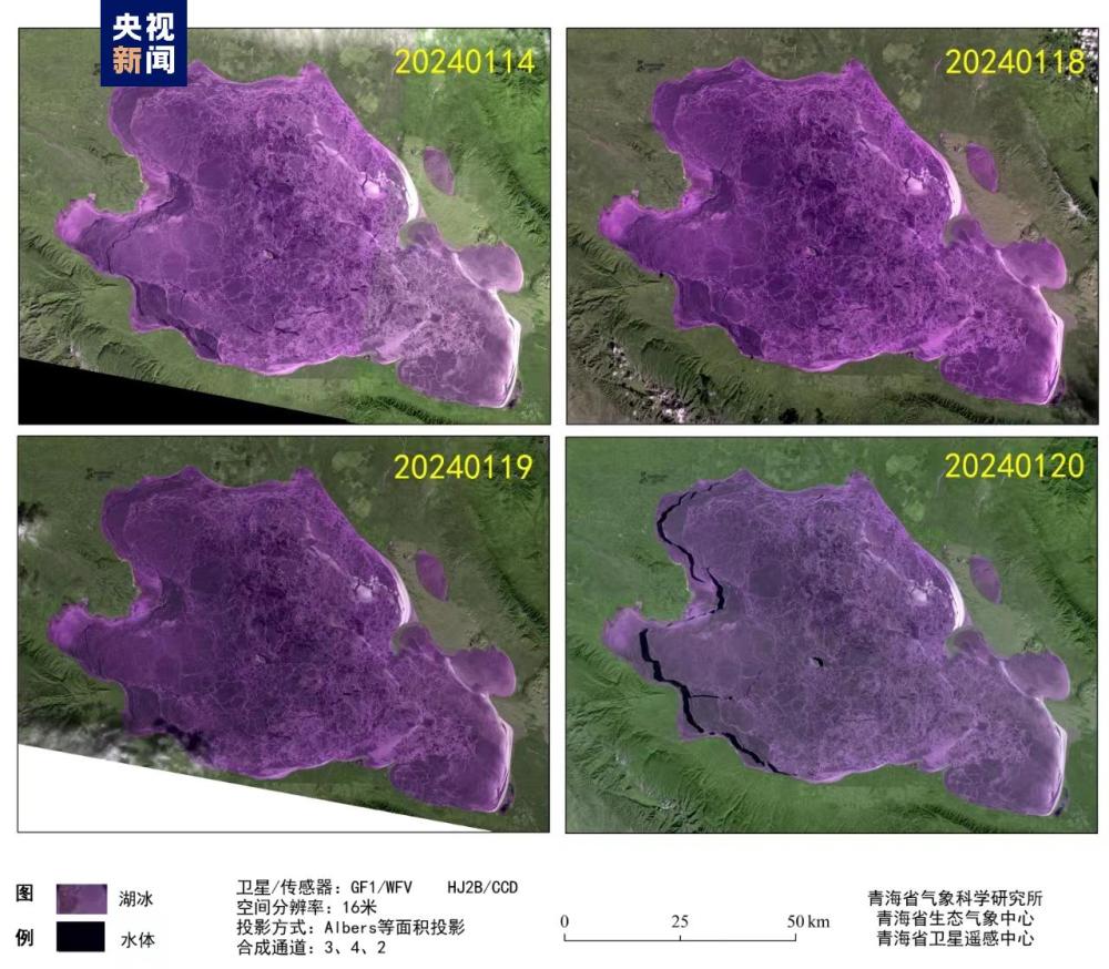 記者從青海省氣象局獲悉,衛星遙感監測顯示,1月14日起青海湖表面完全凍結,依據《高原湖泊湖冰物候遙感監測技術標準》(DB63/T1929-2021),湖泊表面連續5日完全被冰覆蓋的首日為完全凍結日,因此判定1月14日為青海湖完全凍結日。