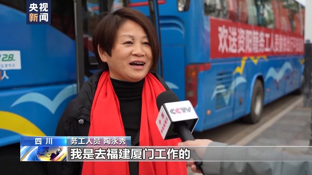 務工人員 陶永秀:我是去福建廈門工作的,往年自己出去買車票很難買,今年有返崗專車,很感謝。