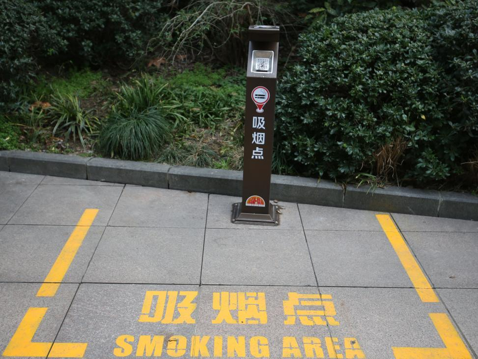 在南京路步行街附近拍攝的室外吸煙點。新華每日電訊記者 辛夢晨 攝