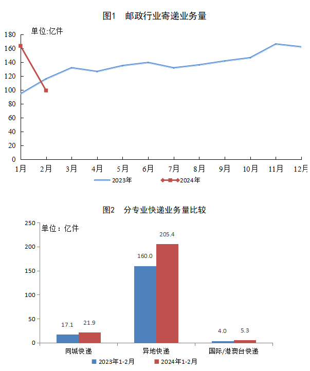 2.受春節(jié)假期因素影響,今年2月份郵政行業(yè)同比增速下降。