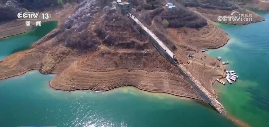 您現(xiàn)在看到的是位于河北省寬城滿族自治縣境內(nèi)的潘家口水庫(kù)“水下長(zhǎng)城”。長(zhǎng)城內(nèi)外,漫山遍野的山杏花悄然綻放,在春風(fēng)中爭(zhēng)芳斗艷,時(shí)而飄來(lái)陣陣花香。春日里,盛開(kāi)的杏花、碧綠的湖水與巍峨的長(zhǎng)城交相輝映,形成了剛?cè)嶂赖耐昝廊诤?,?gòu)成一幅絕美的畫(huà)卷,吸引了眾多游客登上長(zhǎng)城前來(lái)賞花踏青。