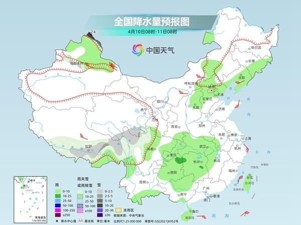 今天(4月10日)夜間開始,隨著暖濕氣流再度加強,南方地區(qū)將迎來新一輪較強降水過程,局地雨勢強勁,并伴有強對流天氣。此外,未來三天,新疆北部也會遭遇雨雪天氣的頻繁打擾。而在北方其他地方,隨著冷空氣影響收尾,今天起氣溫將陸續(xù)反彈,12日前后又將迎來回暖高潮。