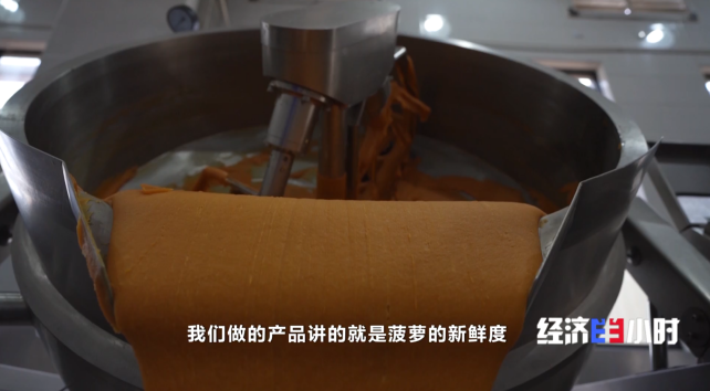 近幾年,徐聞縣也下大力氣促進菠蘿的就地轉化增值。來自廈門的一家企業在9年前就看好徐聞的產地優勢,在曲界鎮建了一家加工廠生產鳳梨餡料,2023年,在政策和市場的雙重驅動下,企業又新建了一家工廠,剛剛投產不到兩個月就已經訂單爆滿。
