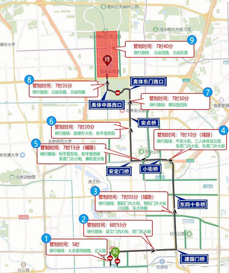 2024北京國際長跑節北京半程馬拉松比賽將于4月14日(周日)7時舉行。起點設在天安門廣場,終點設在奧林匹克公園中心區慶典廣場。比賽期間,部分道路將采取禁止機動車和非機動車通行的交通管理措施。比賽和繞行路線戳圖: