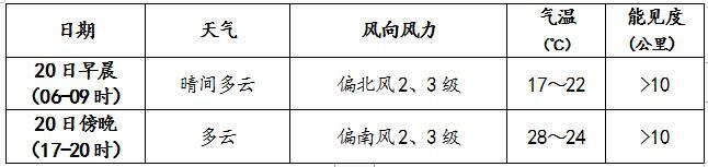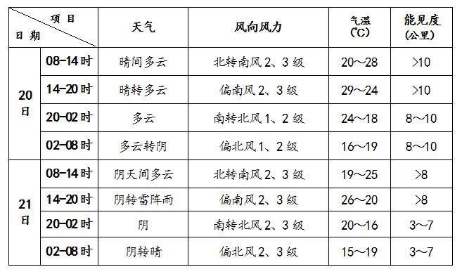 21日傍晚可能出現雷陣雨天氣,雨量不大,請關注最新天氣預報;大部分時間體感舒適,但晝夜溫差較大,早晨體感偏涼,午后偏熱,請根據氣溫變化及時調整著裝,以防感冒。