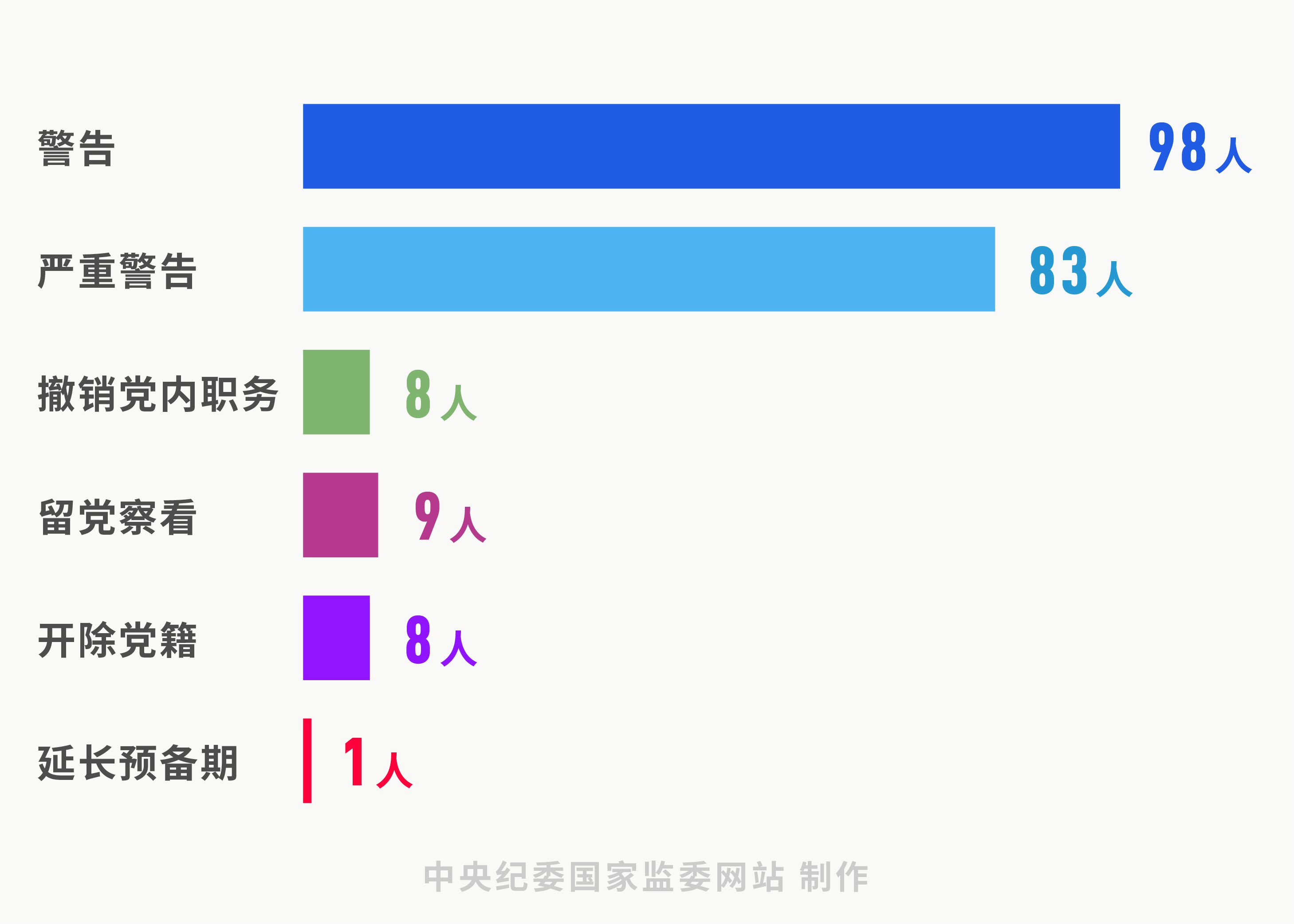160起案例中,相關228名黨員干部均受到黨紀政務處分或其他處理,其中85人為所在單位一把手。受處分的干部,有的頂風違紀,有的心存僥幸,但最終均受到嚴肅處理,再次釋放了執紀必嚴、違紀必糾的強烈信號,進一步印證中央八項規定精神是長期有效的鐵規矩、硬杠杠,必須保持定力,寸步不讓。