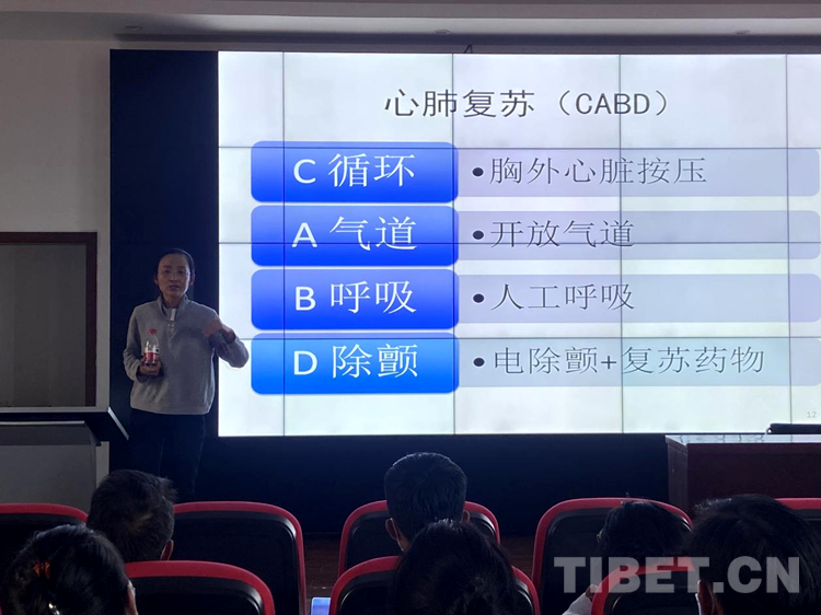 義診之后,北京第七批援藏醫療隊代表劉海霞醫生對社區衛生院醫護人員進行了心肺復蘇等急救培訓,參與義診的專家、醫生就社區衛生院醫護人員在日常工作中所遇到的臨床問題進行解答。