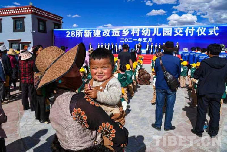 2020年,山東青島援藏組積極爭取愛心企業和社會力量捐資助學,累計籌資2000多萬元,為桑珠孜區建設了28所標準化幼兒園。得知村里要建幼兒園,群眾都很支持。桑珠孜區曲美鄉仁青林村村民旺久把自家的地都拿出來了。他說,村里建幼兒園是好事,一定要支持。