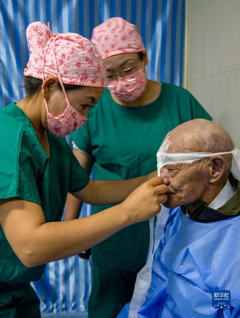 6月8日,光明眼科康復診療院的醫生在為一位農牧民白內障患者做術前準備。新華社記者 姜帆 攝