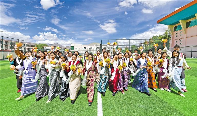 6月4日下午,拉薩中學的高三學生們在校園內盛裝慶祝畢業。記者 唐斌 攝