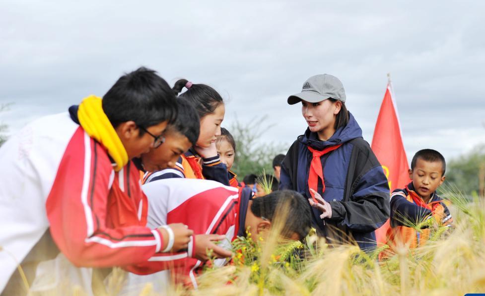 日喀則市上海實驗學(xué)校德育副校長潘杰和學(xué)生在青稞地里交流。[詳細(xì)]