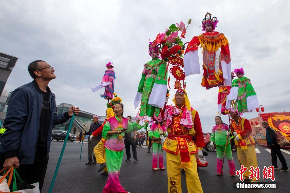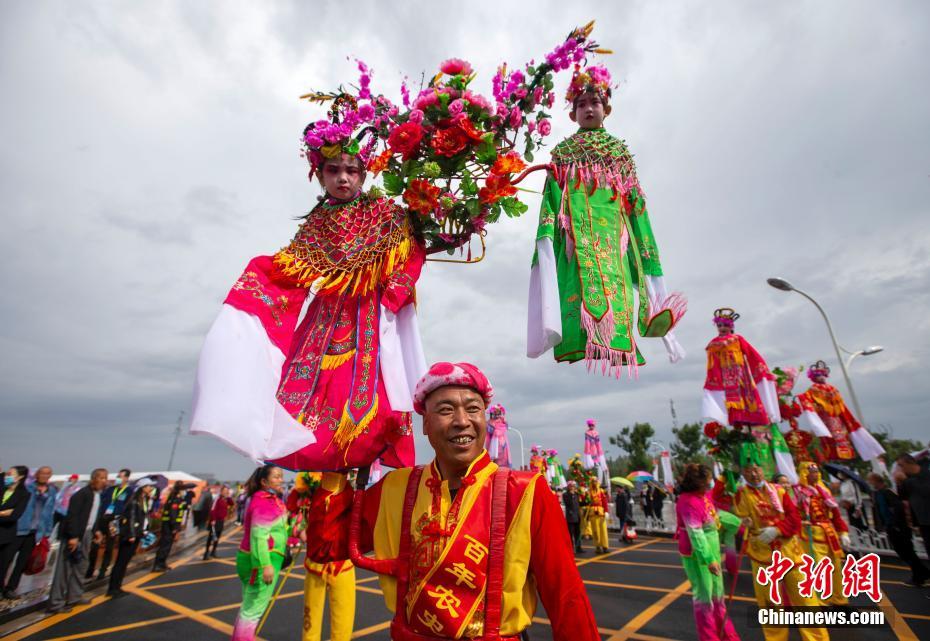 9月23日,山西晉中,當(dāng)?shù)孛癖姳硌萆缁饝c祝豐收節(jié)。當(dāng)日,2021年中國農(nóng)民豐收節(jié)山西慶祝活動暨第七屆中國(山西)特色農(nóng)產(chǎn)品交易博覽會在晉中國家農(nóng)高區(qū)(山西省農(nóng)產(chǎn)品國際交易中心)開幕。 中新社記者 張云 攝