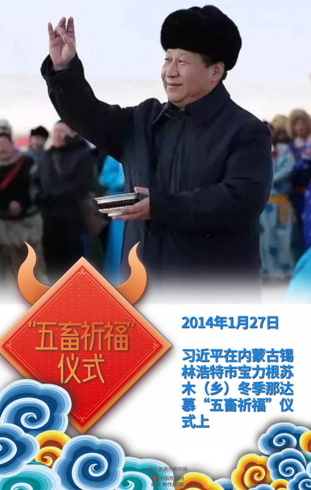 習(xí)近平在內(nèi)蒙古錫林浩特市寶力根蘇木(鄉(xiāng))冬季那達(dá)慕“五畜祈福”儀式上