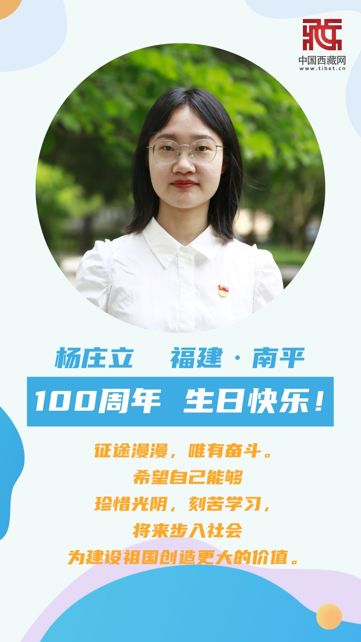 100年前,中國共產黨為苦難深重的中華民族帶來了光明與希望,100年后,中國人民在中國共產黨的帶領下,看到了中華民族偉大復興的曙光。在中國共產黨成立100周年之際,一起聆聽新時代青年學子送上的祝福!(制作/許娜 編輯/澤仁措姆)