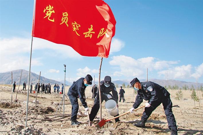 西藏山南邊境管理支隊民警開展義務植樹公益活動