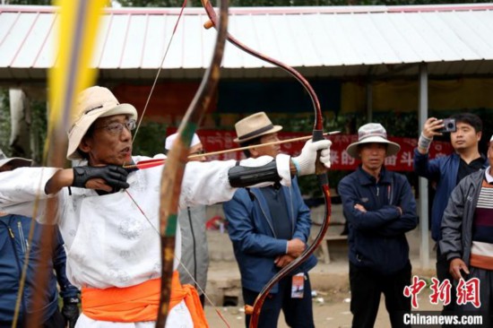圖為8月14日,民間選手參加2020年青海尖扎 德吉“五彩神箭”射箭賽。 中新社記者 張添福 攝