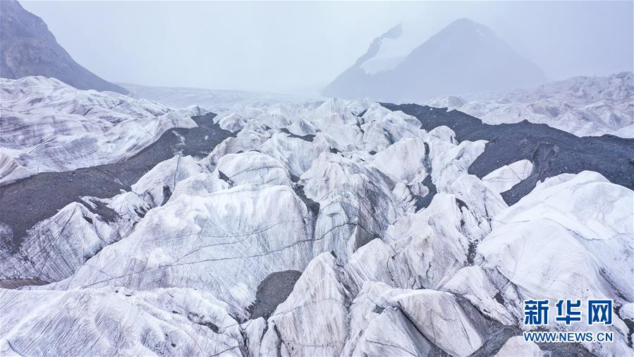 這是8月15日拍攝的崗加曲巴冰川(無人機照片)。 位于青海省玉樹藏族自治州的崗加曲巴冰川,坐落于長江源園區(qū)的各拉丹冬雪山東坡,從空中俯瞰,層疊的冰塔顯得尤為壯觀。 新華社記者 吳剛 攝