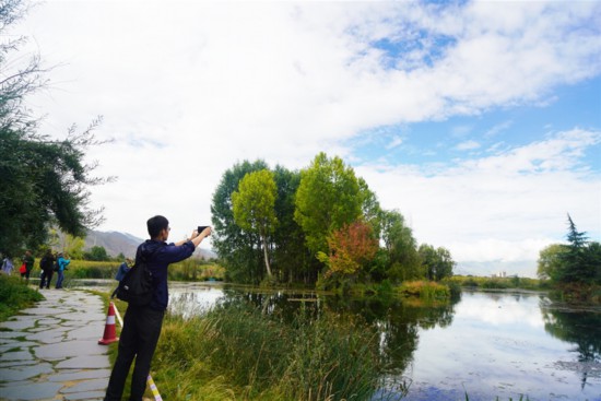 9月初,濕地里的花草樹木從夏天的翠綠到初秋的泛黃,成為了拉魯濕地另一番美景。 人們在步行其間,呼吸著充足的氧氣,情緒高漲,邁開輕快而有力的步伐,沿著拉魯濕地步道健步前行,時而駐足觀望沿途美景,時而聚集一方合影留念,不僅鍛煉了身體,又領略了自然風光,也陶冶了情操。