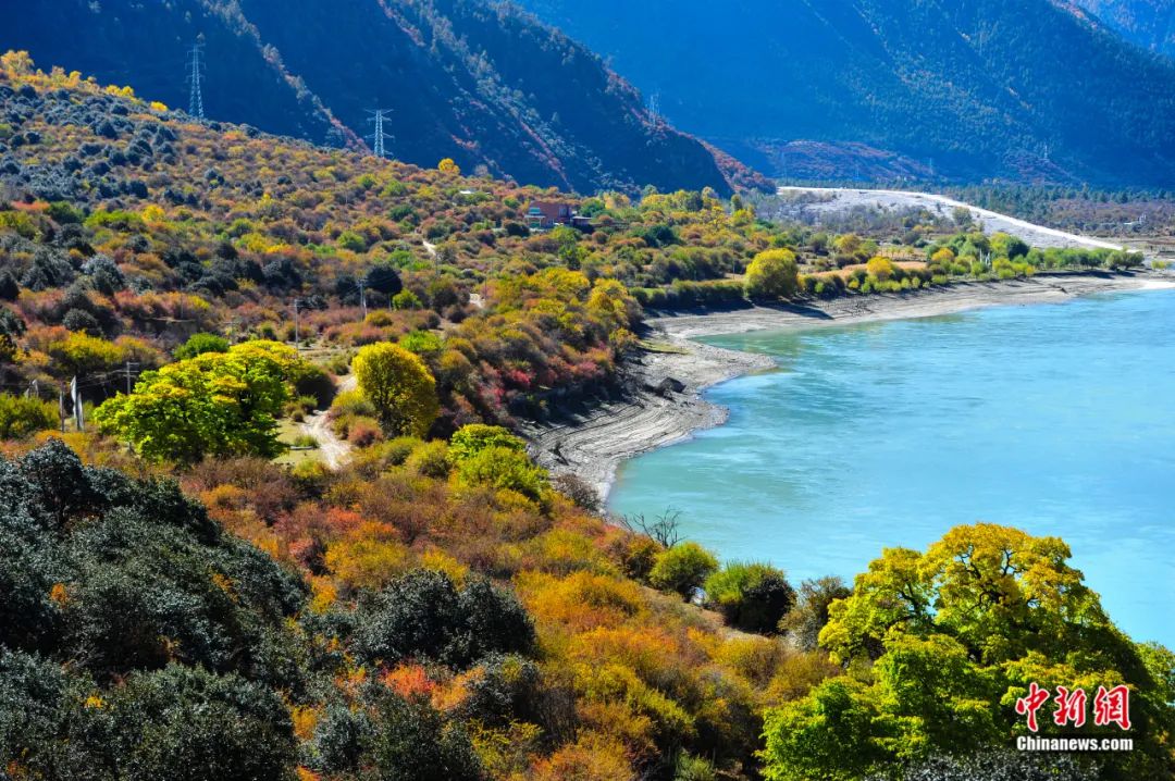 時值秋末冬初,全長504.6公里,最深處6009米的雅魯藏布大峽谷呈現出別樣巍峨壯觀,兩岸五彩交織的森林上雪峰林立,谷底奔涌的雅魯藏布江碧水繞田,宛若童話中的仙境。