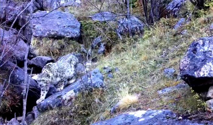 格聶神山景區首次拍到雪豹。視頻截圖