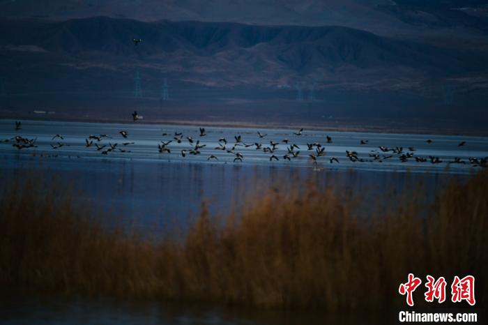 都蘭湖國家濕地公園內,上萬只野生鳥類越冬。 郭曲太 攝