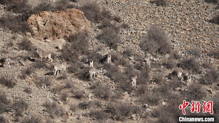 12月中旬,在地處祁連山區的甘肅肅南縣祁豐藏族鄉吊達坂附近,肅南縣融媒體中心記者拍攝到數群巖羊在公路旁的山坡上悠閑覓食。據目測,此次拍到公路旁覓食巖羊約有200多只。巖羊是國家二級重點保護野生動物,體型中等,形態介于野山羊與野綿羊之間。巖羊具有極高的攀巖技術,可以在絕壁上自由跳躍,一跳可達二三米,因此也被稱為“巖壁上的精靈”。近年來,肅南縣深入推進祁連山國家級自然保護區生態文明建設,加強保護區管理,實施退牧還草等措施,當地生態環境逐步改善,民眾保護意識不斷增強,使得當地野生動物數量逐年增加。