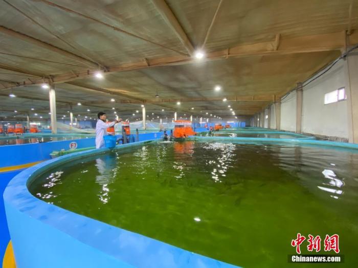 資料圖為2020年12月28日拍攝的青海湖裸鯉救護中心循環水恒溫育苗車間。 中新社記者 李江寧 攝