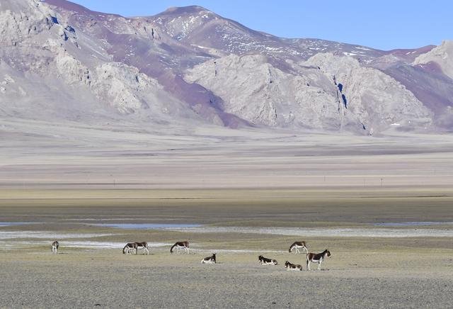 藏北高原上的藏野驢(1月16日攝)。新華社記者 張汝鋒 攝