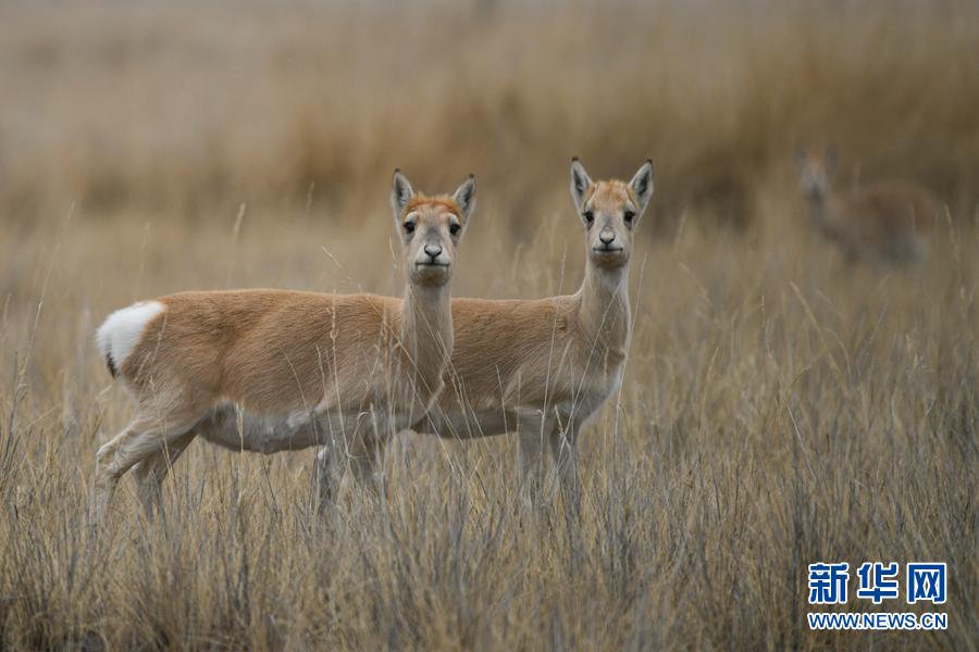 在青海湖特護區內活動的普氏原羚。新華網 潘彬彬 攝