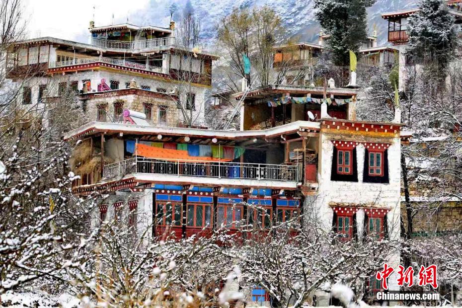 圖為丹巴藏寨披上一層“白紗”。 吉進(jìn) 攝