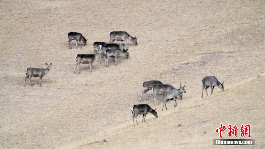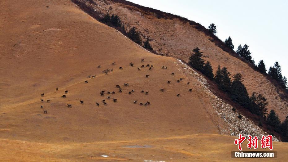 2月5日,在祁連山國家公園甘肅南段發現近百只野生馬鹿種群。 吳生文 攝