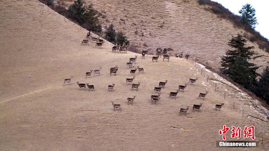 2月5日,在祁連山國家公園甘肅肅南段發現近百只野生馬鹿種群,這群馬鹿分兩處在山坡上悠閑吃草,隨著太陽的升起,鹿群越過圍欄,消失在松林、灌木叢中。據了解,馬鹿為國家二級保護動物,2008年被世界自然保護聯盟列入瀕危物種紅色名錄,如此規模馬鹿種群的出現,標志著當地生態環境的恢復、好轉。