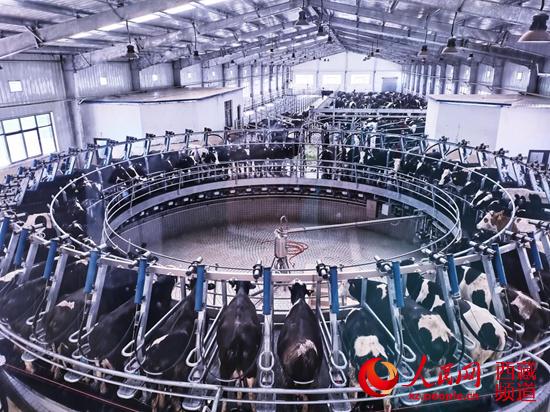 下午5點,正是擠奶時間。養殖場早就拋棄傳統人工擠奶,取而代之的是現代化操作車間。全自動轉盤式擠奶設備,運用全自動糞污處理系統對奶牛的糞尿進行減量化、無害化、資源化處理,形成了“奶牛養殖—沼液還田—飼草種植”的綠色循環養殖模式。