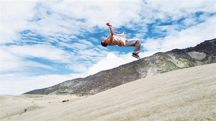 7月29日,記者從拉薩市驅車近100公里,來到位于山南市扎囊縣扎若村的沙漠公園,沙丘藝術公園幾個大字赫然映入眼簾。進入景區,沙海起伏連綿,掀起金色波浪。因為前一日剛下過雨,地勢降低的地段里面積了一些水,在金黃的沙漠上,形成了大大小小的水坑,清澈見底,倒映著藍天白云,點綴了整片沙海。