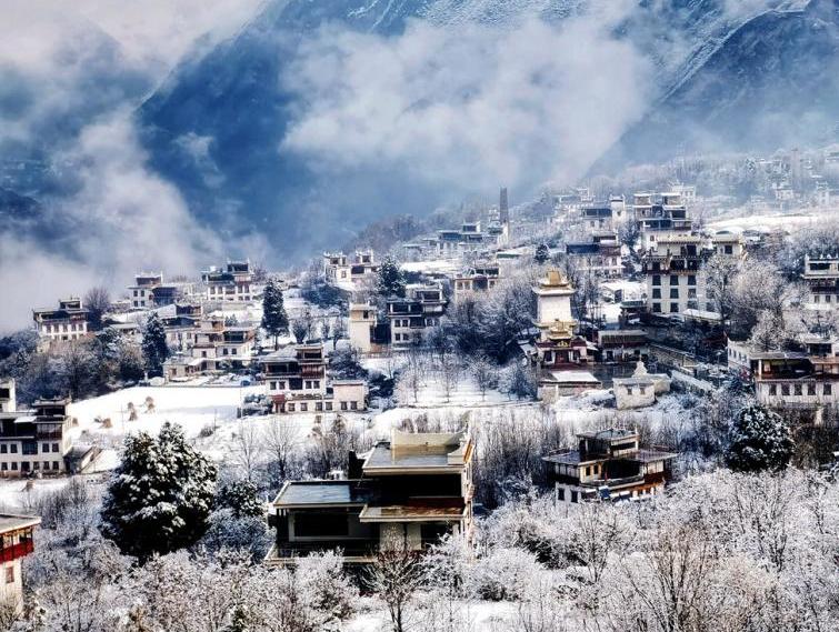 四川丹巴:雪后的藏寨和古碉銀裝素裹美如童話