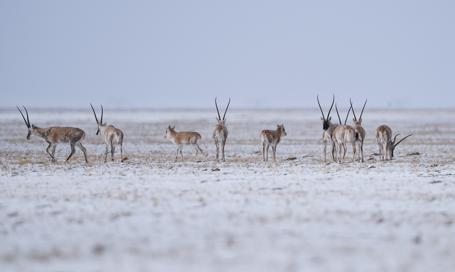 4月20日,藏羚羊在三江源可可西里地區活動。新華社記者 吳剛 攝