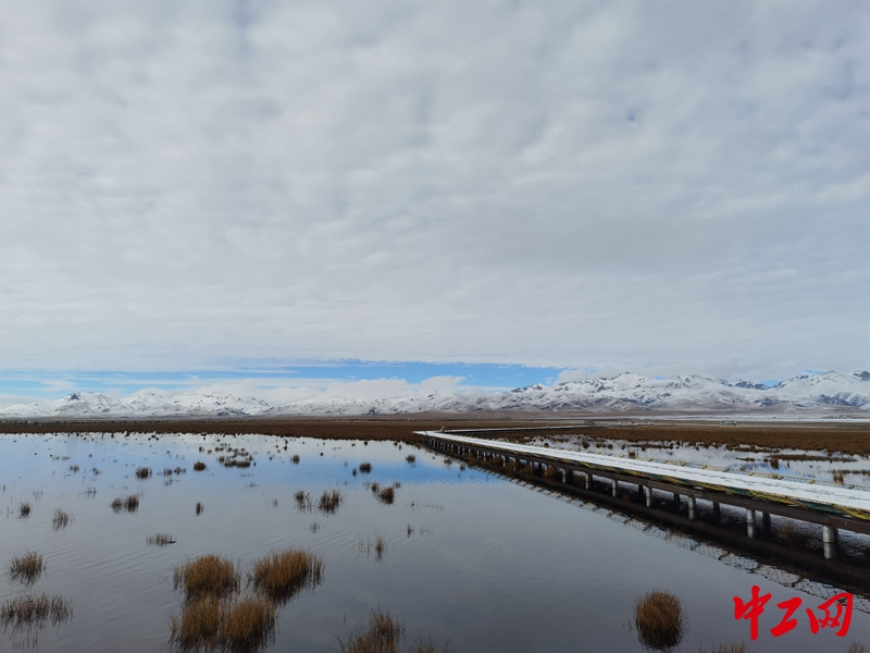 10月20日,“母親河畔的中國”采訪團來到位于四川若爾蓋濕地國家級自然保護區的花湖濕地。十月末的若爾蓋縣氣溫已接近零度,遠處山峰銀裝素裹,陽光從低沉的云朵中一瀉千里,照亮了靜謐的花湖濕地。