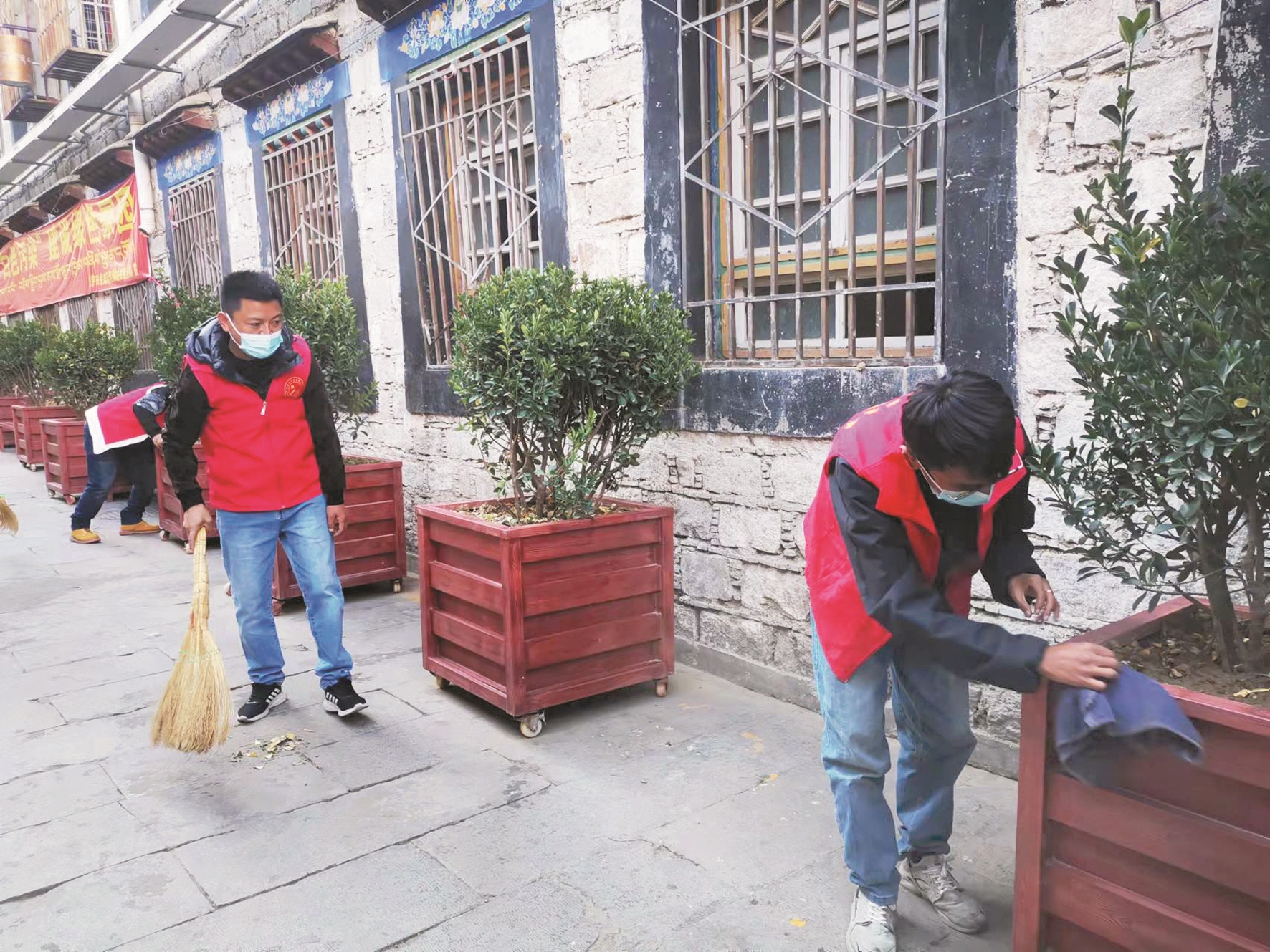 圖為策門林社區工作人員正在打掃轄區衛生。 拉薩融媒記者 趙 慧攝