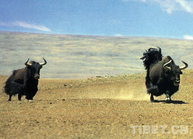 性情強悍的野牦牛傳宗接代的方式也是驚心動魄的。每年的七八月份是野牦牛的發情交配季節。雄性野牦牛相遇,必然展開一場激烈的角斗,勝利者獲得對雌性野牦牛的占有權,戰敗者只能灰溜溜地落荒而逃。