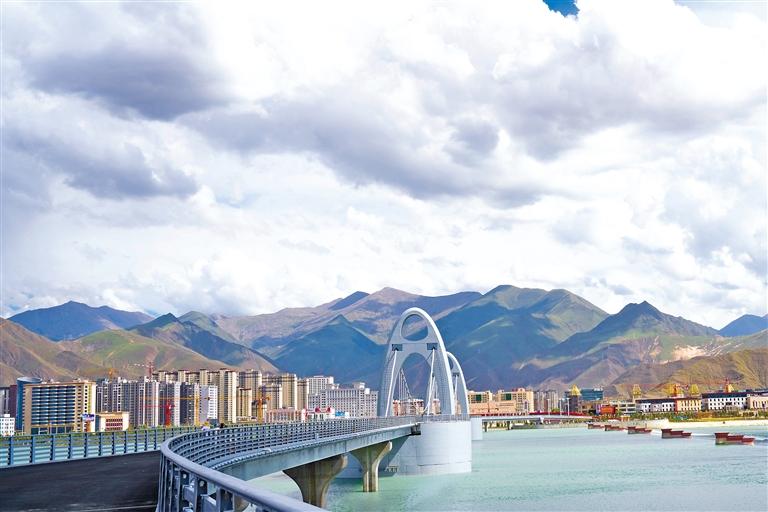 拉薩市中華文化公園作為自治區(qū)一項惠民工程,特別增設(shè)了拉薩河生態(tài)景觀,包括拉薩河景觀燈、健身步道、涼亭等休閑與景觀于一體的公共設(shè)施。白天,漫步在公園小道,藍(lán)天白云、涼亭綠樹、碧波蕩漾,迷人的景色讓人心曠神怡。夜幕降臨,河面微風(fēng)徐徐,兩岸燈火璀璨,和美連心橋上的人群絡(luò)繹不絕。